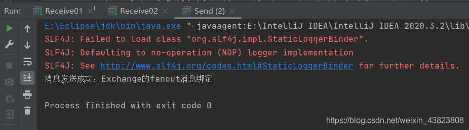 运行消息发送者即可,可以看到两个消息接收者都正确无误的接收到了数据。