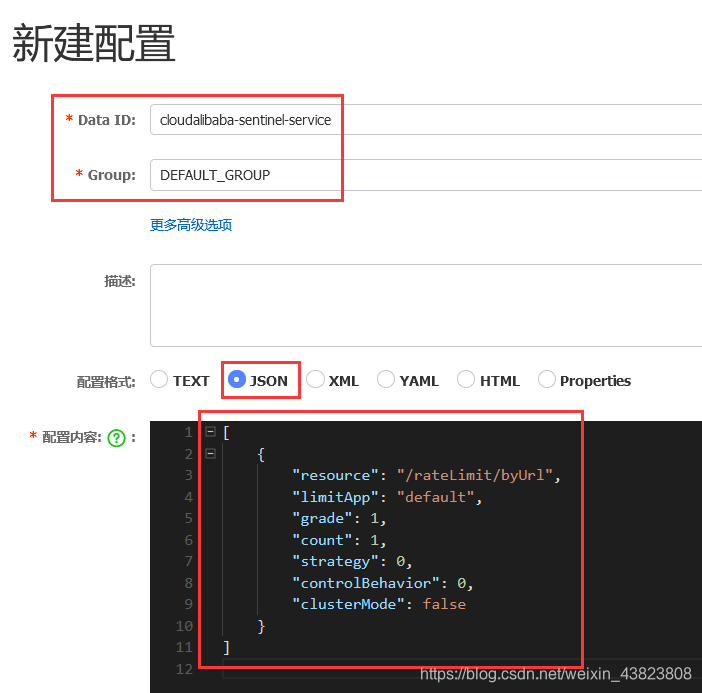 我们在nacos中添加配置。配置信息解释: