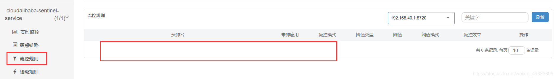 然后我们将8401微服务模块停掉,此时再到sentinel中查看,可以看到刚刚配置的的流控规则已经没了。