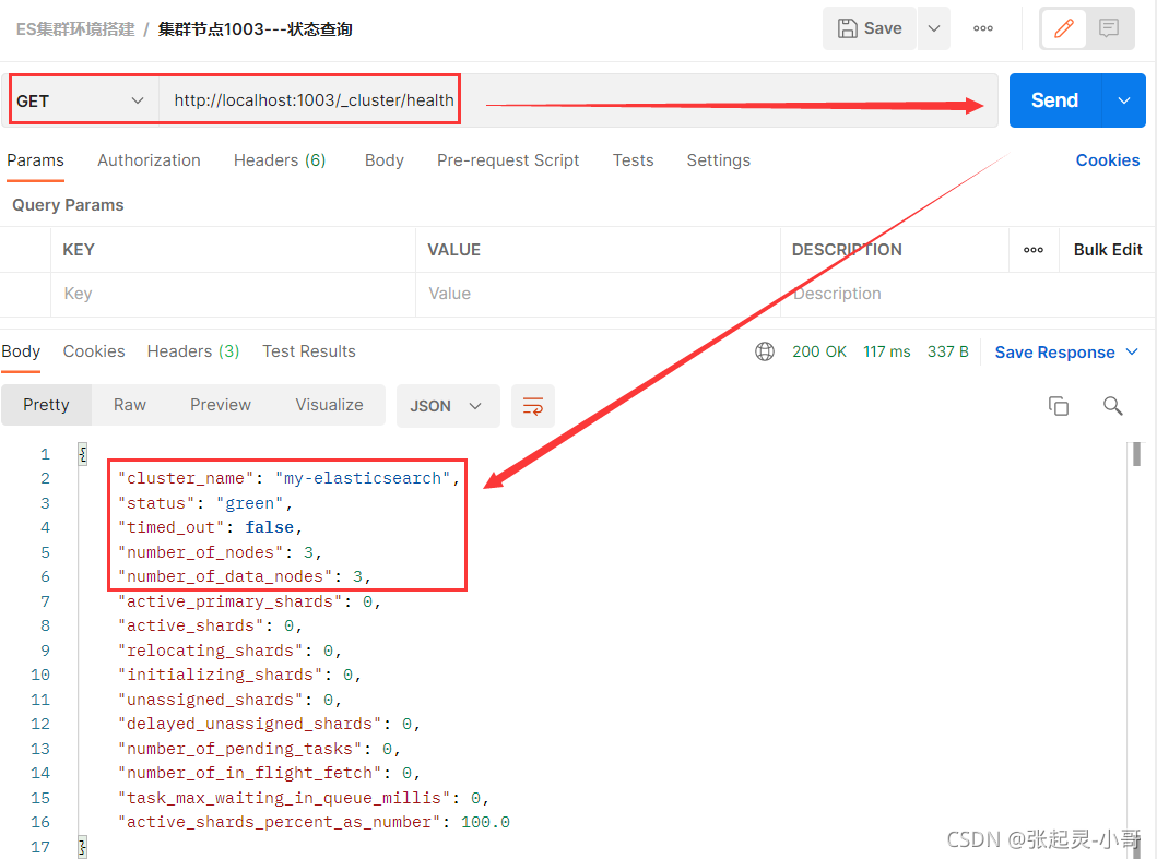 三个节点都已经启动,可以到Postman中检测一下集群节点的状况。