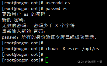 因为安全问题,Elasticsearch 不允许 root 用户直接运行。所以要创建新用户,我就在 root 用户中创建新用户es。