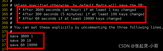 在60秒内,如果有10000个数据发生改变,则进行持久化。