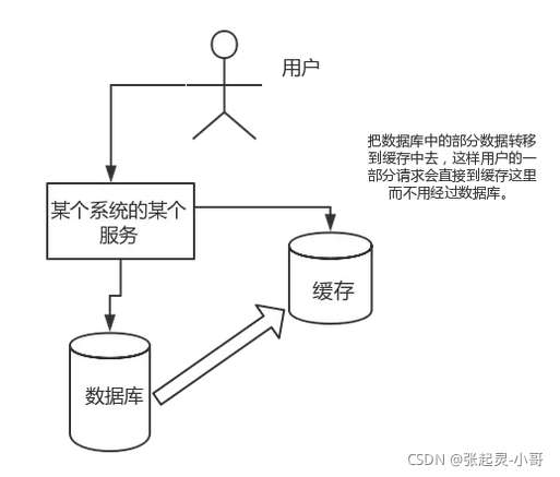 直接操作缓存能够承受的请求是远远大于直接访问数据库的,所以我们可以考虑把数据库中的部分数据转移到缓存中去,这样用户的一部分请求会直接到缓存这里而不用经过数据库。