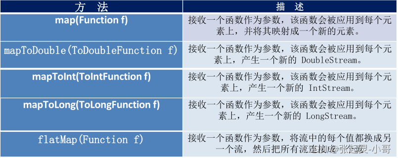 而在终止操作时一次性全部处理,称为 “ 惰性求值 ”。 常用的中间操作大体上可以分为三类:①筛选与切片;②映射;③排序