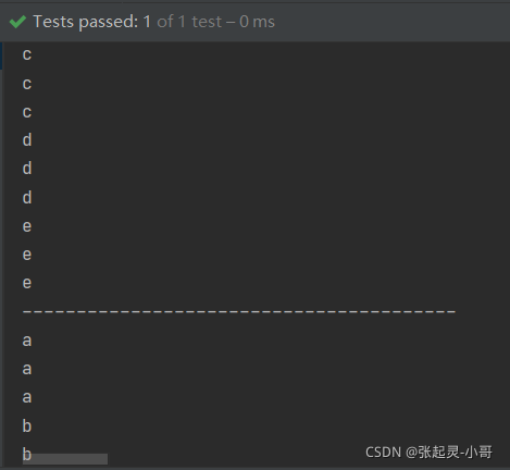 如果我们使用flatMap了话,它会将strList集合中元素以 "a'、"b"、"c"、"d" 这样的形式返回,所以此时Stream流的泛型就只是一个Character字符数组,那么一次遍历就可以取出数据了(也就是代码下半部分的那个forEach)。