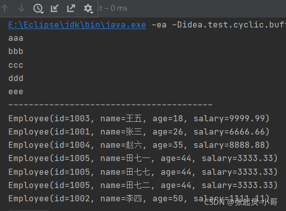 List<Employee> employees = Arrays.asList( new Employee(1001,"张三",26,6666.66), new Employee(1002,"李四",50,1111.11), new Employee(1003,"王五",18,9999.99), new Employee(1004,"赵六",35,8888.88), new Employee(1005,"田七",44,3333.33), new Employee(1005,"田七",44,3333.33), new Employee(1005,"田七",44,3333.33) );