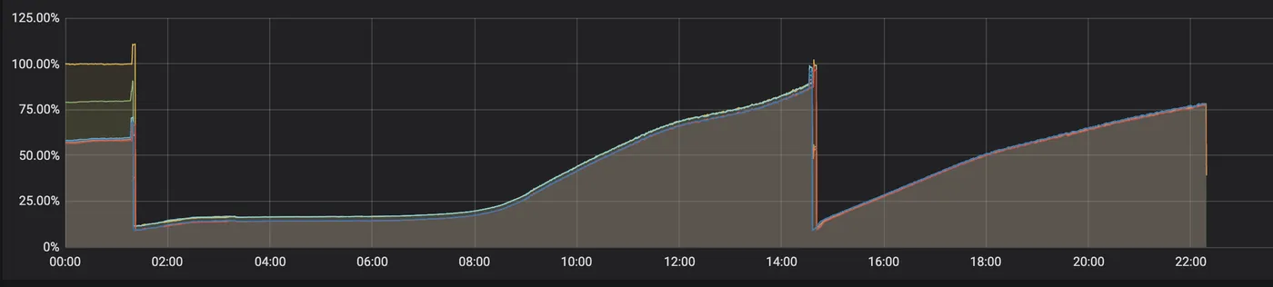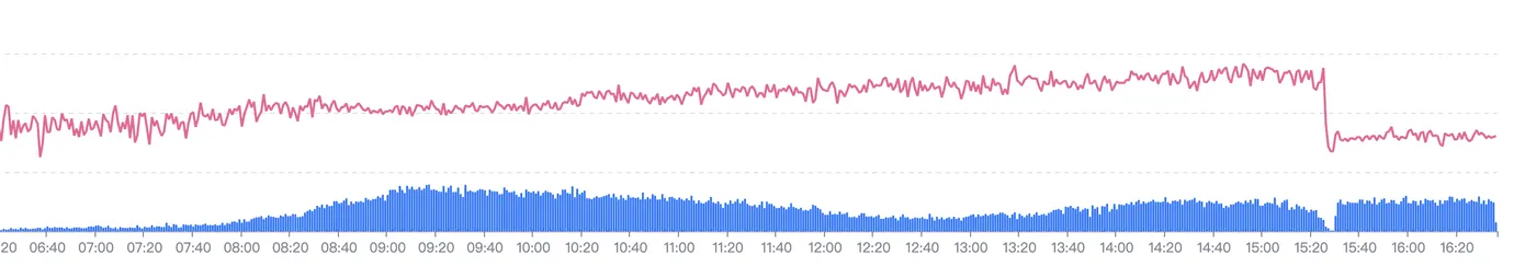没想到项目放到线上后,随着请求量的增多,却感觉到首屏速度越来越慢,并且是在持续性地变慢。而且在发布完后(也就是容器重建了),耗时又陡然降下来了。