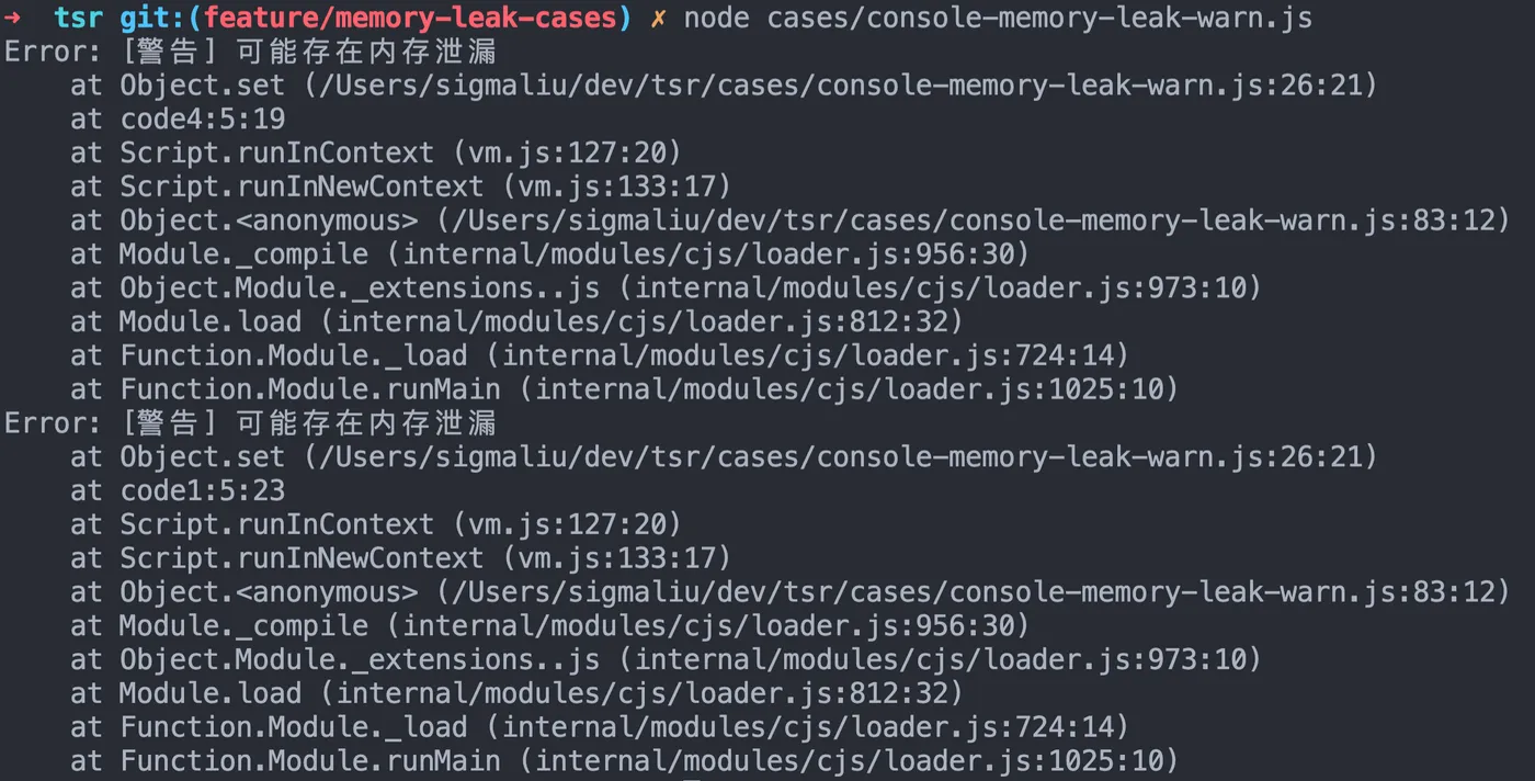 当然是想到了办法我才会说了,之前想这个问题的时候想了一下午,想得太复杂了,所以试了好多种方法也没有想出来。我们先来澄清一点,这里是因为要赋值的函数里又调用了存储的 nativeError 吗?其实是无关的,即使你将 nativeError(...argv) 注释掉,仍然是会存在内存泄漏的问题。