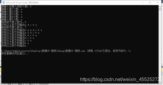#include "pch.h" #include <iostream> #include<string> #include<Windows.h> using namespace std; #define OK 1 #define ERROR 0 #define OVER -2 #define MAXSIZE 100 typedef int Status; //返回状态 typedef struct StackNode { char date; StackNode *next; }*LinkStack; //初始化链栈 Status InitStack(LinkStack s) { s = NULL; return OK; } //入栈 Status Push(LinkStack s, char e) { LinkStack p; p = new StackNode; p->date = e; p->next = s; s = p; return OK; } //出栈 Status Pop(LinkStack s, char &e) { LinkStack p; if (s == NULL) { return ERROR; } e = s->date; p = s; //用p临时保存栈顶元素的值 s = s->next; //修改栈顶指针 delete p; return OK; } //取栈顶元素的值 char Getchar(LinkStack s) { if (s!=NULL) { return s->date; } cout << "栈为空,无法取栈顶元素!" << endl; return ERROR; } int main() { StackNode s; InitStack(&s); char a, b, c; a = 'c', b = 'b', c = 'a'; Push(&s, a); Push(&s, b); Push(&s, c); cout << "出栈前栈顶为:"; Getchar(&s); char e; Pop(&s,e); cout << "出栈后栈顶为:"; return 0; }