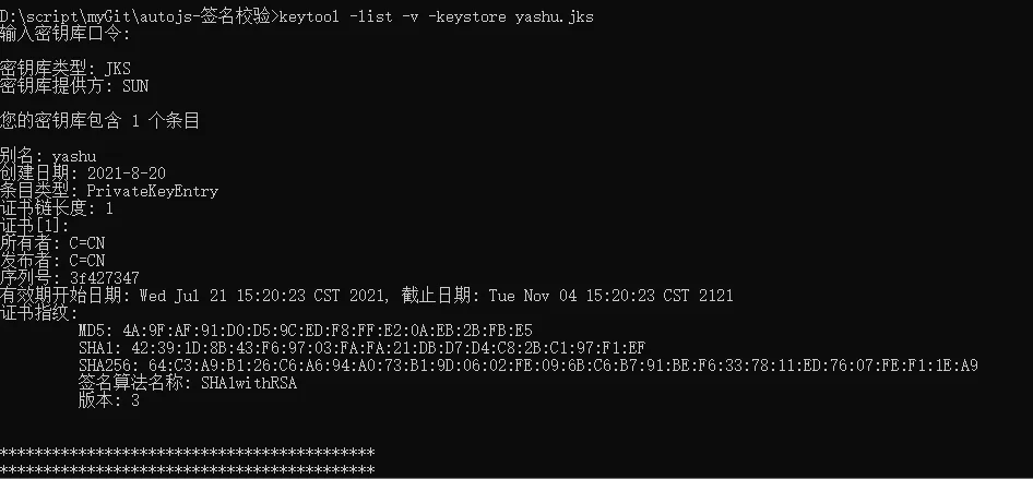 /** * 获取应用的签名 */ function getCertificateSHA1Fingerprint() { //获取包管理器 let pm = context.getPackageManager(); //获取当前要获取 SHA1 值的包名,也可以用其他的包名,但需要注意, //在用其他包名的前提是,此方法传递的参数 Context 应该是对应包的上下文。 let packageName = context.getPackageName(); //返回包括在包中的签名信息 let flags = PackageManager.GET_SIGNATURES; //获得包的所有内容信息类 let packageInfo = pm.getPackageInfo(packageName, flags); //签名信息 let signatures = packageInfo.signatures; let cert = signatures[0].toByteArray(); //将签名转换为字节数组流 let input = new ByteArrayInputStream(cert); //证书工厂类,这个类实现了出厂合格证算法的功能 let cf = CertificateFactory.getInstance("X509"); //X509 证书,X.509 是一种非常通用的证书格式 let c = cf.generateCertificate(input); //加密算法的类,这里的参数可以使 MD4,MD5 等加密算法 let md = MessageDigest.getInstance("SHA1"); //获得公钥 let publicKey = md.digest(c.getEncoded()); //字节到十六进制的格式转换 let hexString = byte2HexFormatted(publicKey); return hexString; } //这里是将获取到得编码进行16 进制转换 function byte2HexFormatted(arr) { let str = new StringBuilder(arr.length * 2); for (let i = 0; i < arr.length; i++) { let h = Integer.toHexString(arr[i]); let l = h.length; if (l == 1) h = "0" + h; if (l > 2) h = h.substring(l - 2, l); str.append(h.toUpperCase()); if (i < arr.length - 1) str.append(":"); } return str.toString(); }