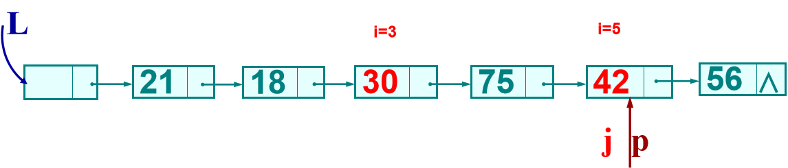 - j做计数器,累计当前扫描过的结点数,j初值为1。