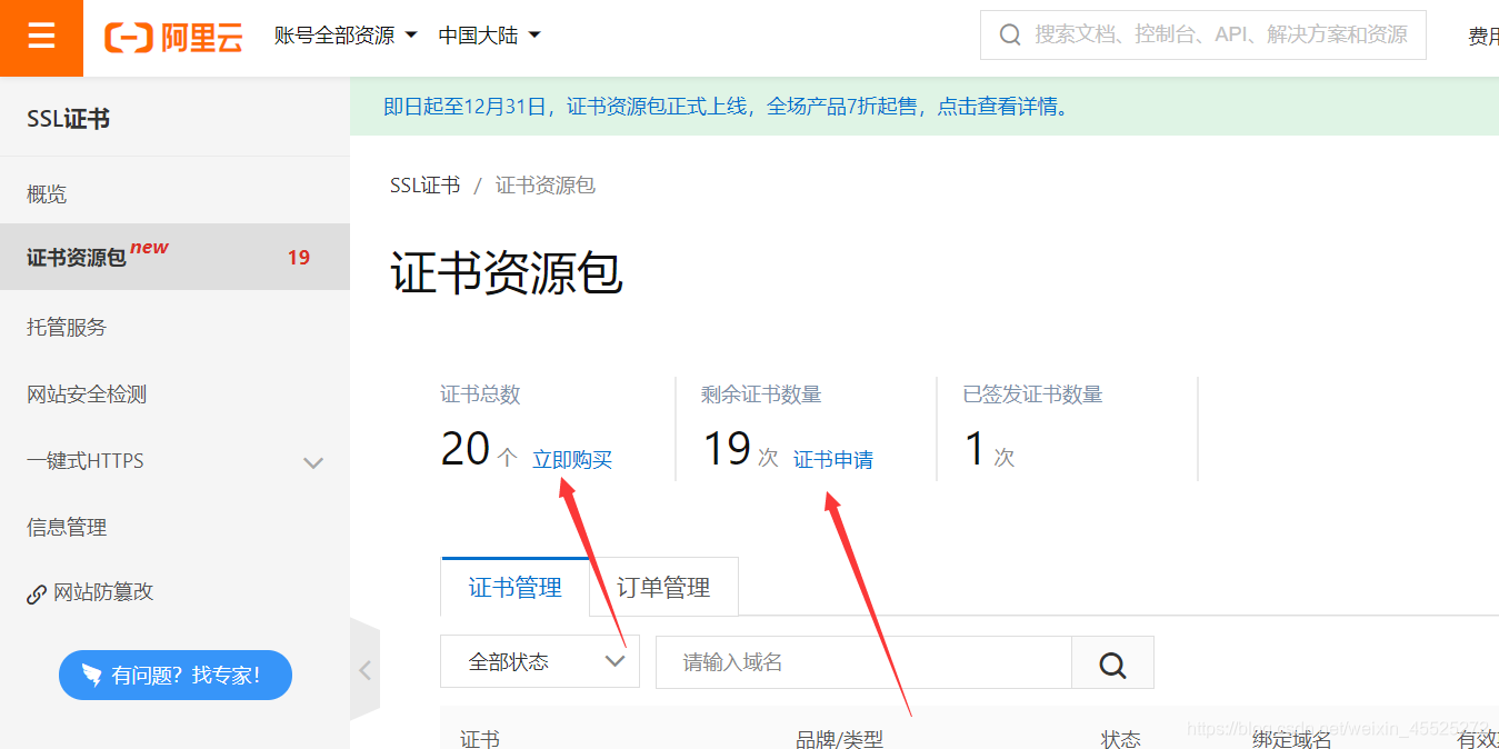 申请免费证书或者购买