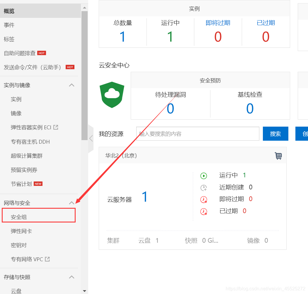 点击安全组进入端口管理