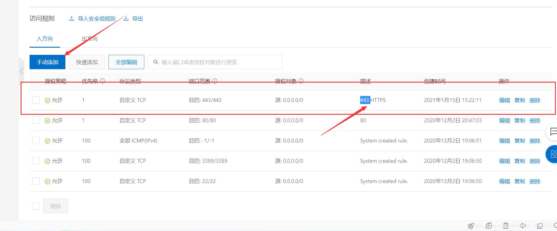 如果没有443,手动添加就好了。