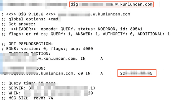 - Mac 系统:打开终端命令窗口,在命令行中dig CNAME地址,得到dig的IP地址。