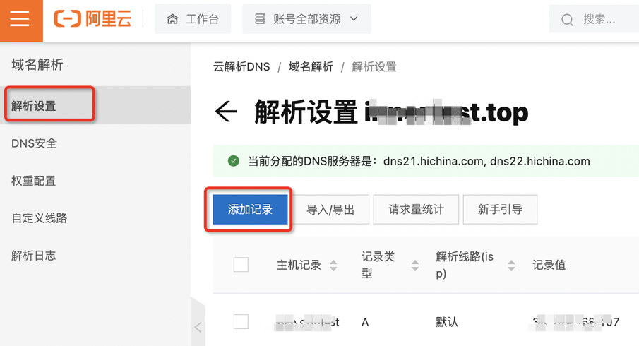 2. 打开您购买域名的厂商对应控制台,找到配置解析的位置。