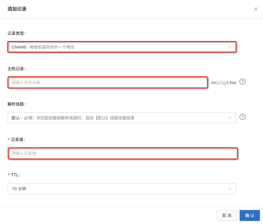 - 填写记录值:将您在CDN控制台上复制加速域名对应的CNAME记录值拷贝即可。
