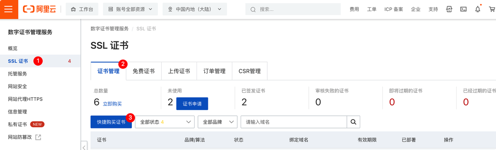 步骤一:暂无证书时购买流程(阿里云平台购买)
