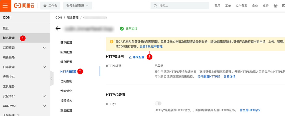 2. 如期望提升HTTP内容的传输效率,建议开启HTTP/2;如您业务中存在较多弱网用户,建议关闭HTTP/2。
