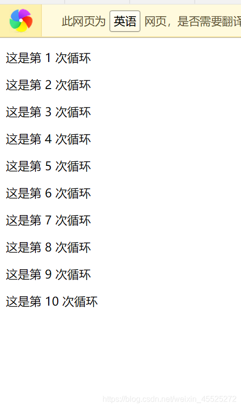 <!DOCTYPE html> <html lang="en"> <head> <meta charset="UTF-8"> <meta name="viewport" content="width=device-width, initial-scale=1.0"> <meta http-equiv="X-UA-Compatible" content="ie=edge"> <title>Document</title> <script src="./lib/vue-2.4.0.js"></script> </head> <body> <div id="app"> <!-- in 后面我们放过 普通数组,对象数组,对象, 还可以放数字 --> <!-- 注意:如果使用 v-for 迭代数字的话,前面的 count 值从 1 开始 --> <p v-for="count in 10">这是第 {{ count }} 次循环</p> </div> <script> // 创建 Vue 实例,得到 ViewModel var vm = new Vue({ el: '#app', data: {}, methods: {} }); </script> </body> </html>