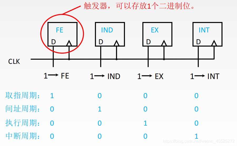 这四个周期在计算机内部是用触发器控制的