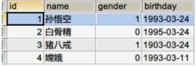 需求:向学生表中添加 4 条记录,主键是自动增长