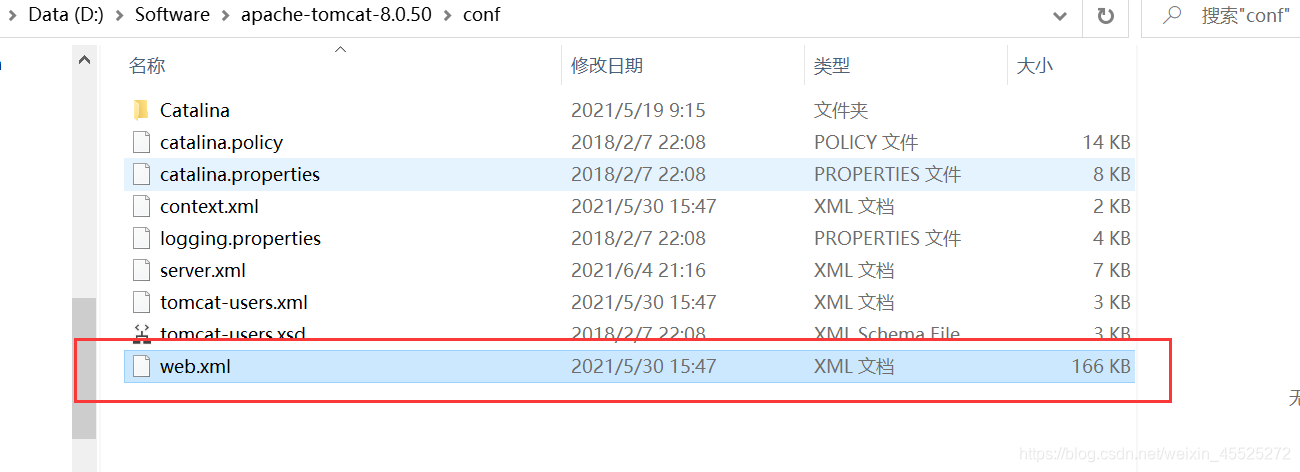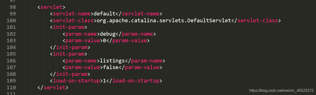 默认Servlet是由服务器提供的一个Servlet,它配置在Tomcat的conf目录下的web.xml中。如下图所示: