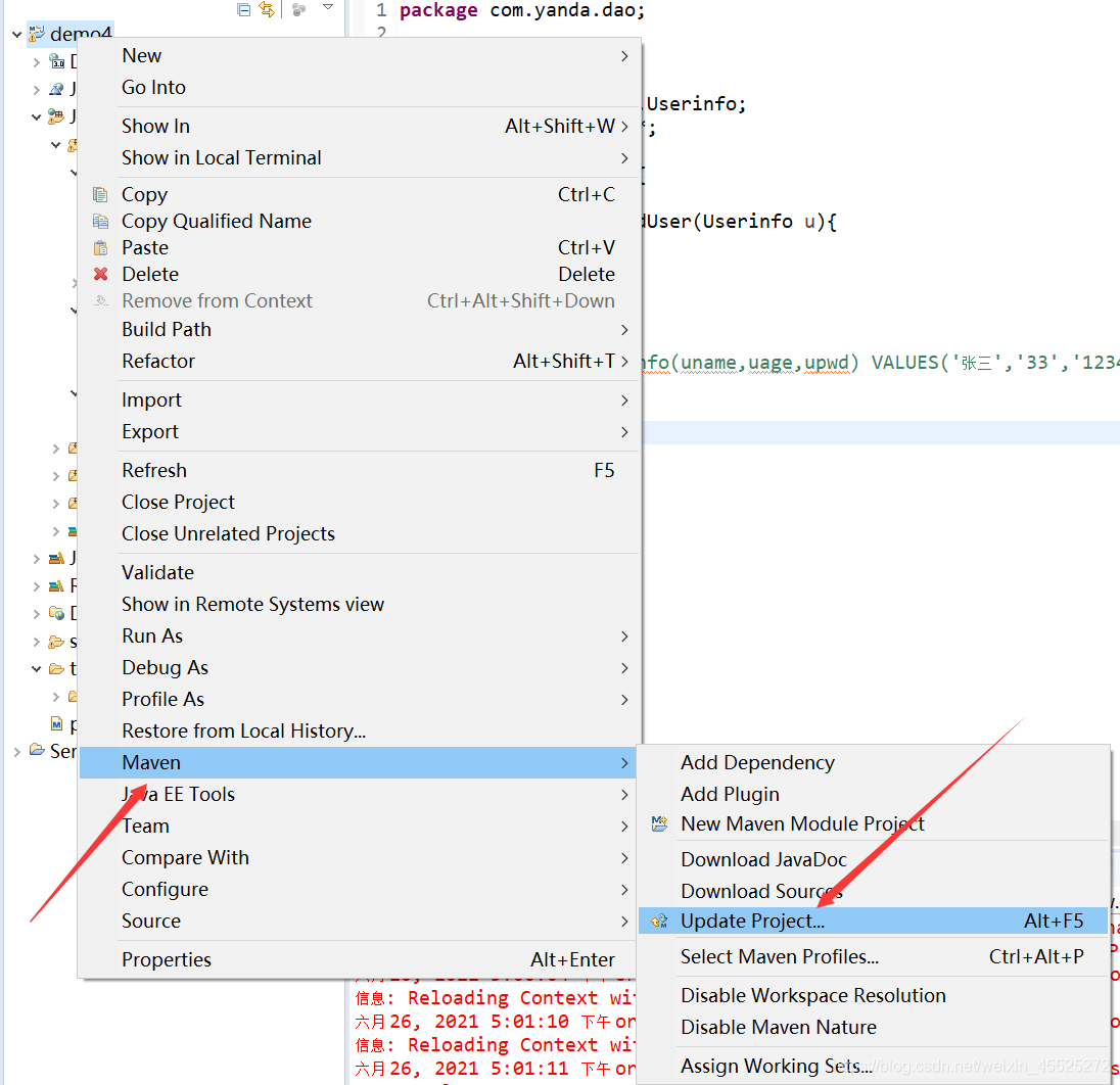 选中maven项目,右键 → maven → update 让maven重新下载依赖包
