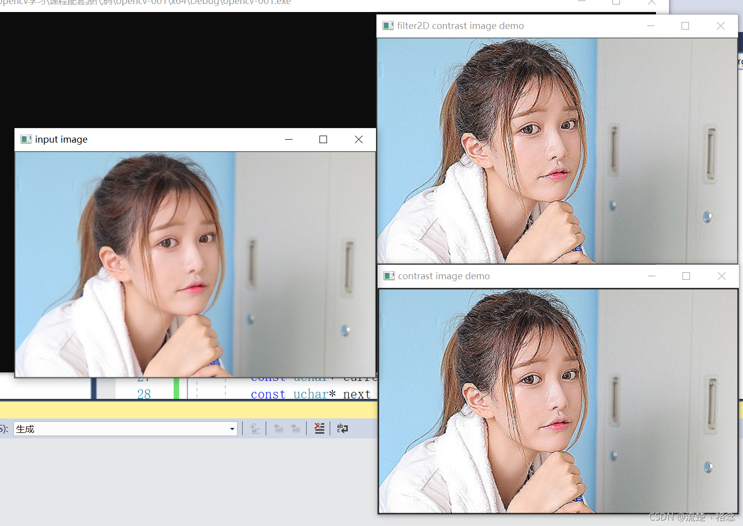 红色是中心像素,从上到下,从左到右对每个像素做同样的处理操作,得到最终结果就是对比度提高之后的输出图像Mat对象