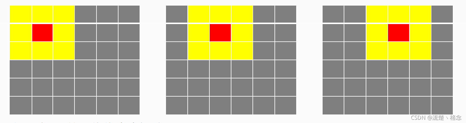 如下图:假设有6x6的图像像素点矩阵(灰色) ,黄色3x3是卷积算子
