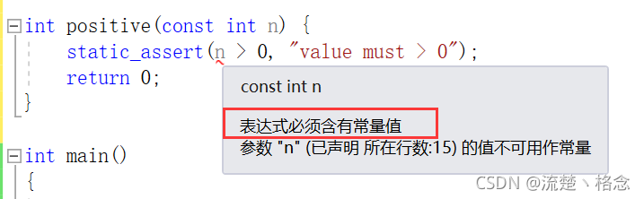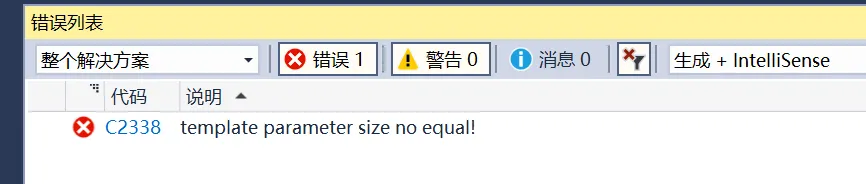 注意:static_assert的断言表达式的结果必须是在编译时期可以计算的表达式,即必须是常量表达式。如果使用变量,则会导致错误。