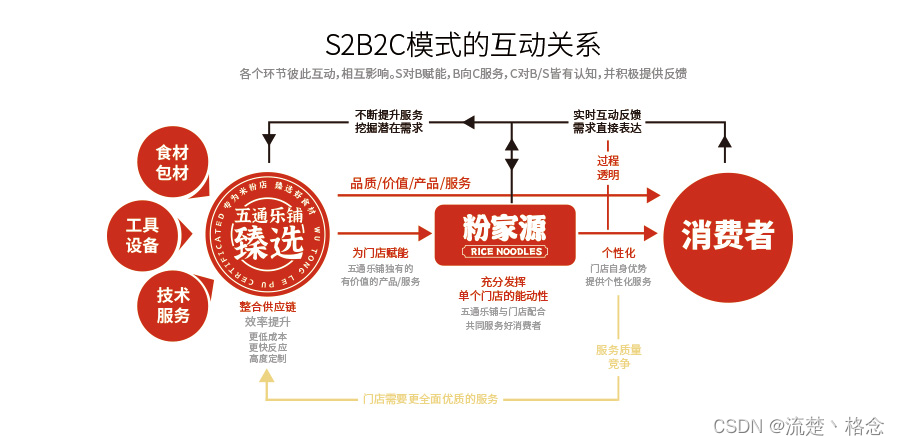粉家源的S2B2C模式,突破过往“钱”与“物”的简单交换,旨在构成供应商、渠道商与消费者的全面互动。