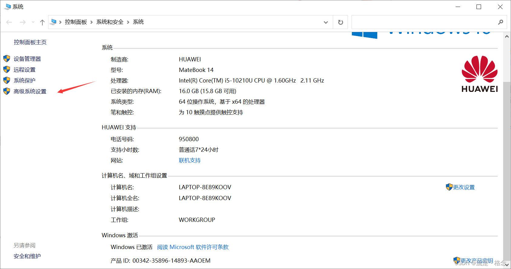 点击高级系统设置