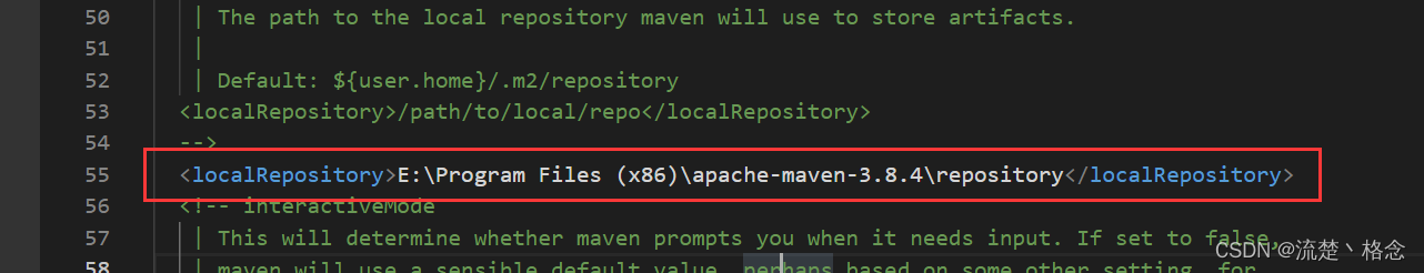 <localRepository>E:\Program Files (x86)\apache-maven-3.8.4\repository</localRepository>