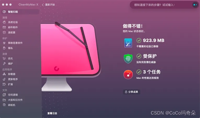 想让你的 macOS 常用常新?CleanMyMac 必占一席之地。相比 CleanMyMac 3,该版本新增 CleanMyMac 助手,将在开机后提供电脑清理建议及后续步骤,比过去更智能更及时。