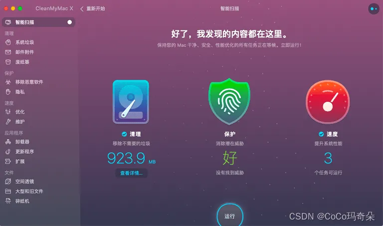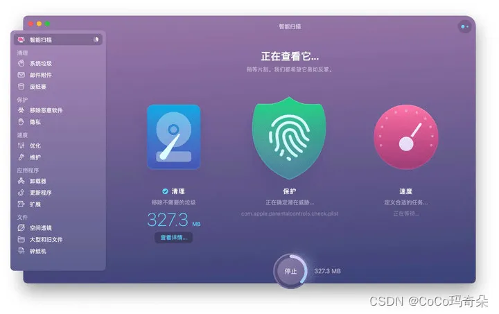 CleanMyMac X 是一款专业的Mac清理软件,可智能清理mac磁盘垃圾和多余语言安装包,快速释放电脑内存,轻松管理和升级Mac上的应用。同时CleanMyMac X可以强力卸载恶意软件,修复系统漏洞,一键扫描和优化Mac系统,让您的电脑焕然一新!