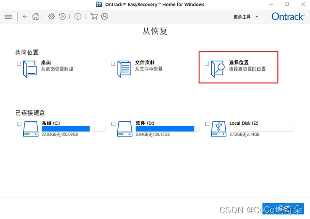 2、选择误删除文件的位置