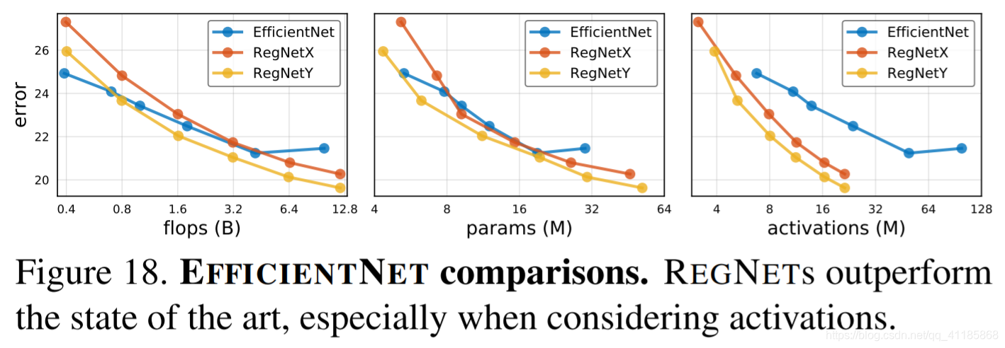 图18。EFFICIENTNET比较。regnet的性能优于当前的技术,特别是在考虑激活时 |