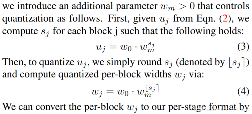 | Parameterization. Our final quantized linear parameterization shares similarity with previous work, e.g. how stage widths are set [26, 7, 32, 11, 9]. However, there are two key differences. First, we provide an empirical study justifying the design choices we make. Second, we give insights into structural design choices that were not previously understood (e.g., how to set the number of blocks in each stages). | 参数化。我们最终的量化线性参数化与之前的工作有相似之处,例如如何设置舞台宽度[26,7,32,11,9]。然而,有两个关键的区别。首先,我们提供了一个实证研究证明我们所做的设计选择。其次,我们提供了以前不了解的结构设计选择(例如,如何在每个阶段设置块的数量)。 |