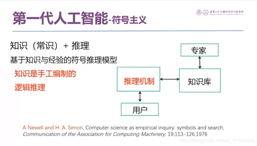 - 第一代人工智能一符号主义模型:知识、算法、算力