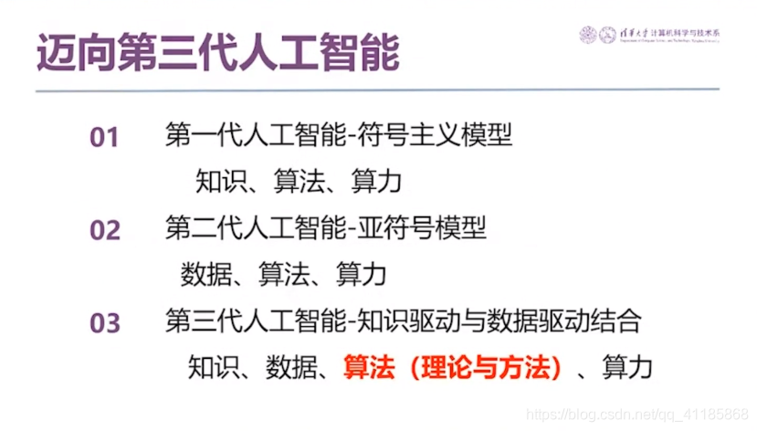 - 第三代人工智能一知识驱动与数据驱动结合:知识、数据、算法(理论与方法)、算力