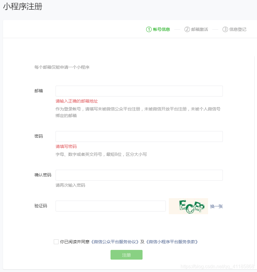 注册地址:https://mp.weixin.qq.com/wxamp/home/guide?lang=zh_CN&token=1844825834