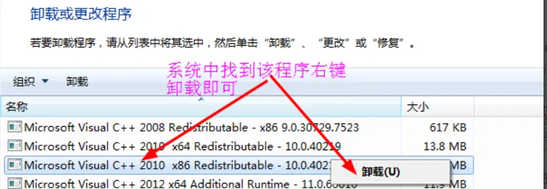 安装软件时需要系统空间环境辅助程序(比如Microsoft Visual C++2010 x86 Redistributable安装失败)