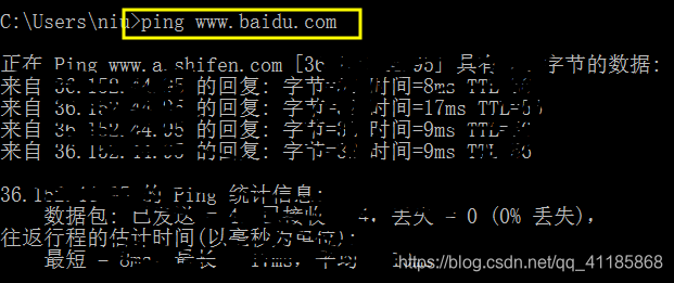 即是否连到了互联网。输入ping www.baidu.com ,在命令行中可以看到百度返回的数据包状态,以及接收数据包的时间。