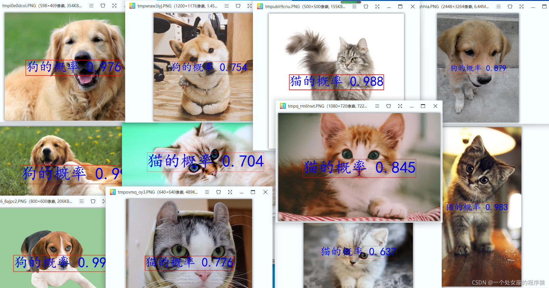 | 21 | dog (14).jpg 狗的概率 0.815 | dog (14).jpg 狗的概率 0.844 | dog (14).jpg 狗的概率 0.904 | dog (14).jpg 狗的概率 0.996 | dog (14).jpg 狗的概率 0.950 | |