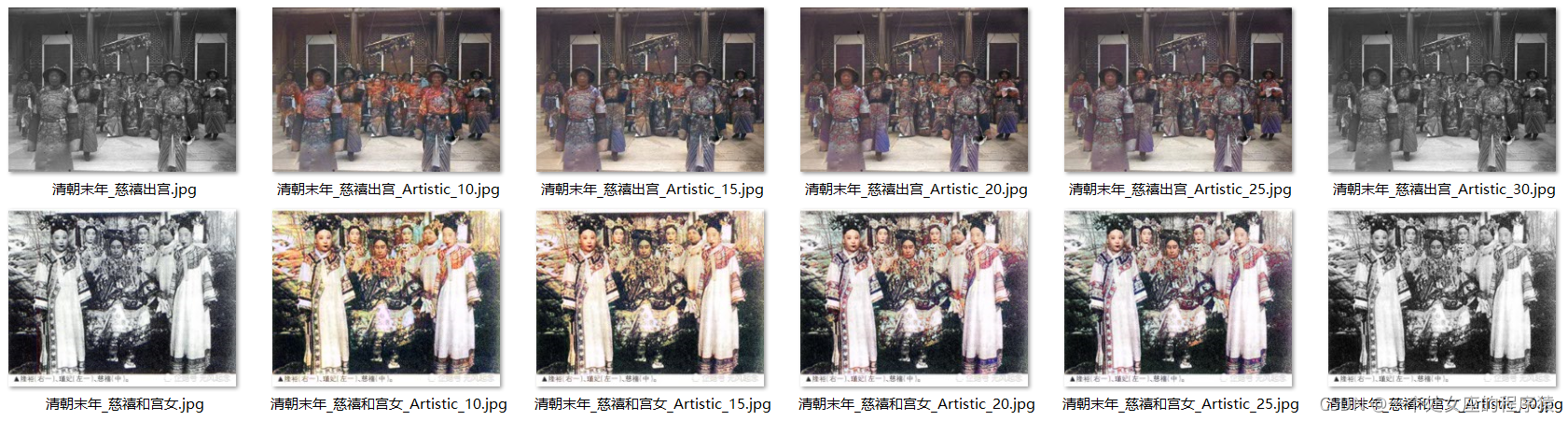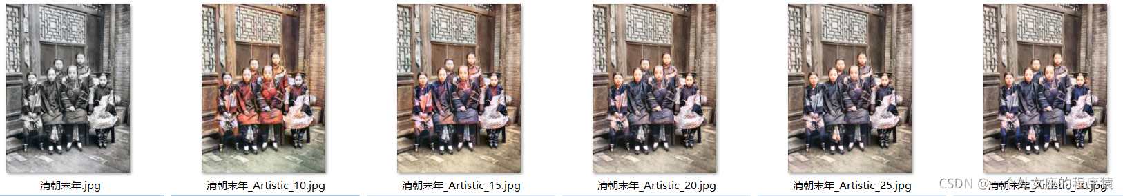利用图像增强技术(图片上色)实现对旧图像和电影片段进行着色和修复(爱因斯坦旧照/清末官员生活场景等案例)