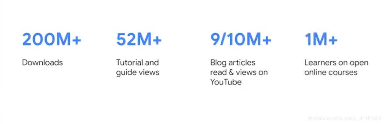 TensorFlow 开源距今,差不多快五年的时间了,到目前为止,TensorFlow 下载量已经超过 2 亿次,教程和指南浏览量达到 5200 万次,博客上文章阅读量超过 900 万次,YouTube 上的浏览量已经达到 1000 万,TensorFlow 已经发展成为开发者们的一个庞大的工具和框架生态系统。