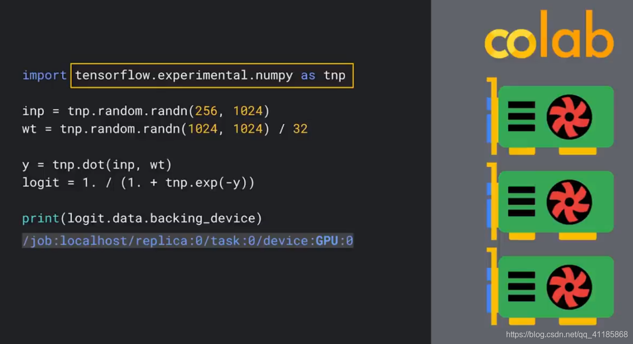 Keras 可以帮助我们使用相同的编码技巧实现这些高级用例,但这并非唯一,也可以使用Numpy 构建,在 TensorFlow 2.5 版本中,TF.NumPy 结合了 Numpy API 的简单特性,同时可以使用 GPU 和 TPU 仅需加速,这些都可以在 Colab 这样工具的 web 中免费使用。