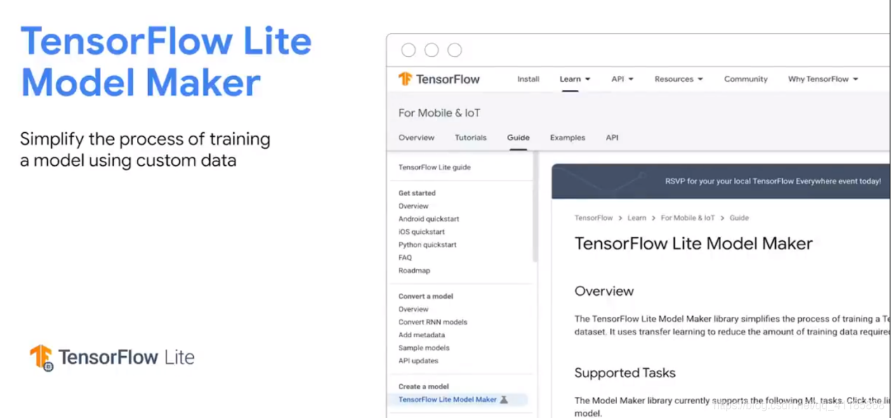 TensorFlow Lite 是一个开源的机器学习框架,用于在设备上实现模型推理,目前有超过 40 亿台设备使用了该技术,使用 TensorFlow Lite Micro 接触数十亿微控制器和嵌入式系统。