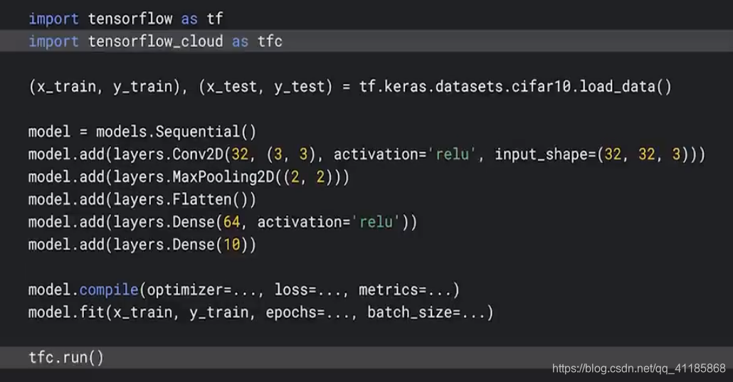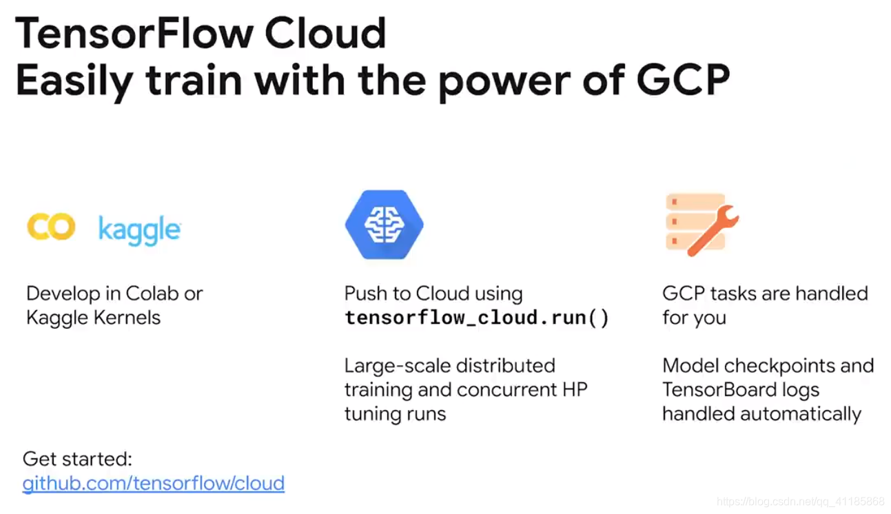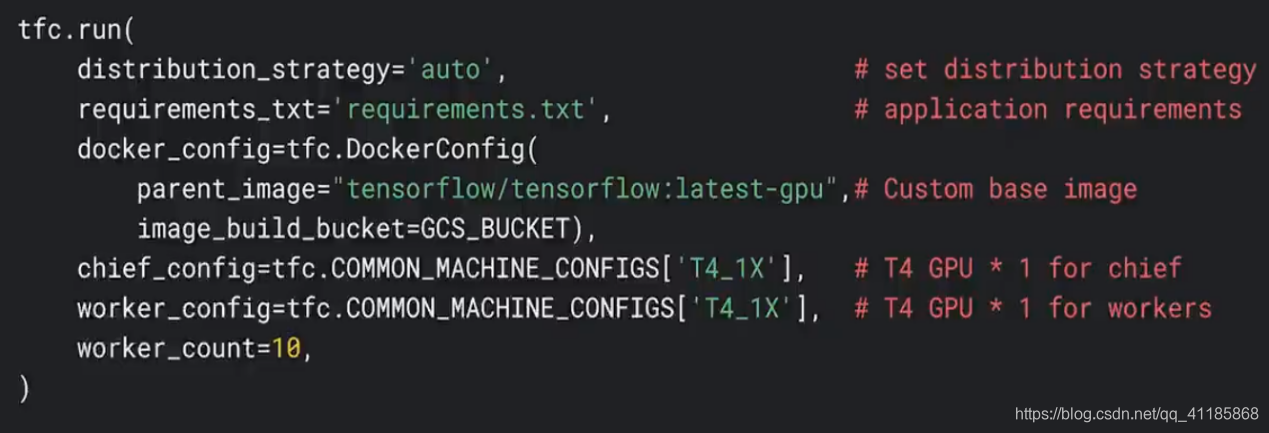 TensorFlow Cloud 可以实现云端部署模型,可以将训练工作发送到可扩容的云基础设施上运行,而无需离开终端。它作为 python 的包,为从本地调试到分布式训练和 TensorFlow Cloud 上参数调优的无缝转换提供 API。